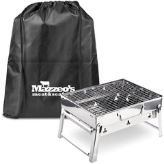 Braaistand with foldable legs, coal tray, and removable rack. Includes a large drawstring cooler bag for easy...