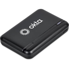 A fully charged 5,000mAh power bank should charge an iPhone once from zero to full charge, before needing to be recharged itself. It should charge most modern Android phones from zero to around 85%. This is an economical option, which won’t take up too much space in your bag, while having ample surface space to brand your company logo or message.