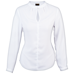 Long set in sleeves with cuff and button closure Garment will compliment any corporate look Front keyhole...