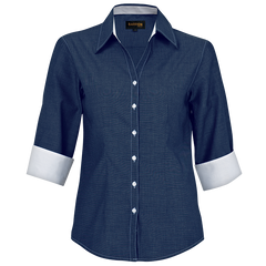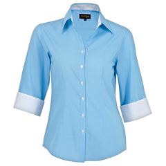OEKO-TEX Constructed V-shaped slimline button stand ¾ Sleeves with contrast turn-up cuffs Curved hem-line for a flattering...