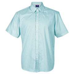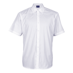 Twill tape trim detail on inner neckline Short sleeves with stitched Constructed button stand Back yoke detail...