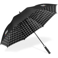 Large water resistant polyester umbrella with check design inner is not only stylish but strong and durable...